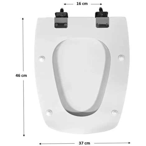 - Entraxe de fixation de l’abattant : 16 cm (+/- 0.5cm)