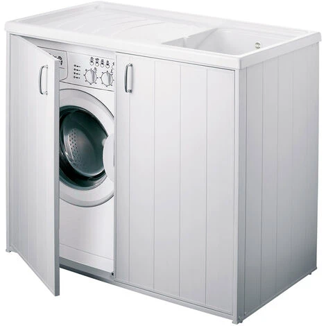 - Bac à laver avec meuble cache lave linge en PVC blanc 109×60 cm mod. Silvestro