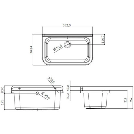 - Possibilité de fixation au mur, grâce aux trous sur le bord de l’évier