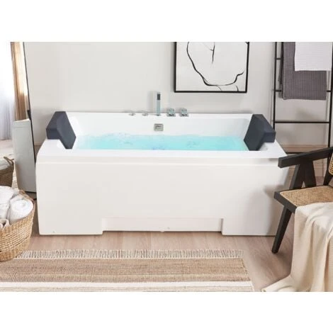 L`offre inclue: 1 x Bain à remous, 1 x Système de trop-plein, 1 x Robinet cascade, 1 x Pommeau de douche avec tuyau flexible, 2 x Appuis-tête, 1 x tuyau de drainage