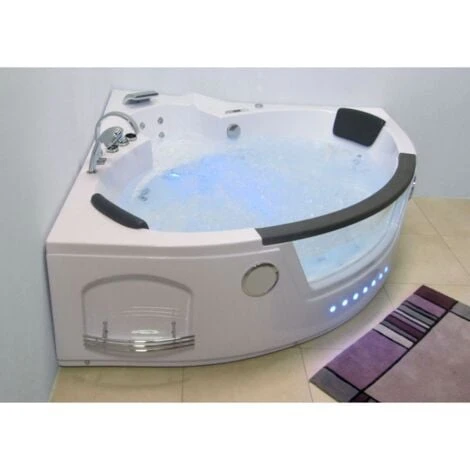 Le réchauffeur d’eau permet de maintenir l’eau de cette baignoire balnéo angle 2 places à bonne température.
