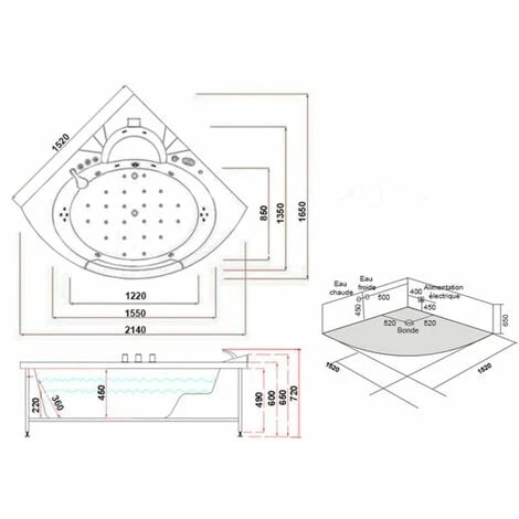 – Nombres de jets latéraux : 2 x 2 Turbobuses<br> – Détails chromothérapie : 3 spots subaquatiques avec 3 couleurs mixées