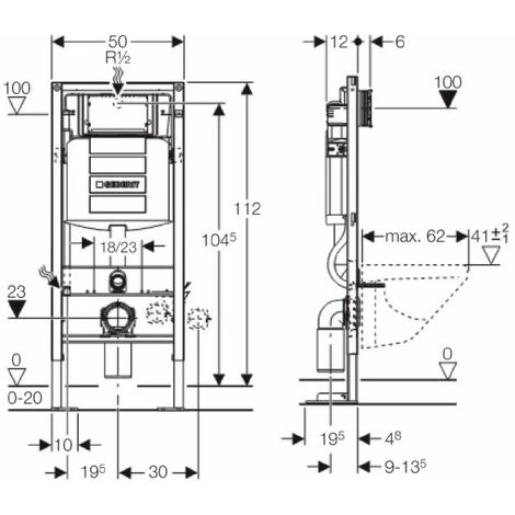 – Alimentation R 1/2 avec robinet d’arrêt intégré