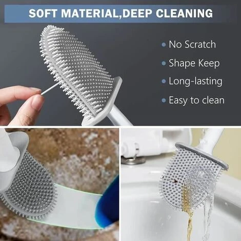 - 1. TÊTE DE BROSSE TRP : Cette brosse de toilette en silicone est faite de TPR doux et résilient. Elle est facile à nettoyer et ne laisse aucune rayure sur le vernis des toilettes.