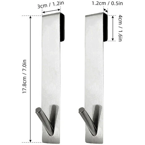 STABLE SUR LA PORTE : Les crochets ont une longueur de 17,8 cm, ce qui est plus bénéfique pour les crochets. mettre sur la porte. Et les crochets conviennent à la porte en verre sans cadre d’une épaisseur inférieure à 1,2 cm.