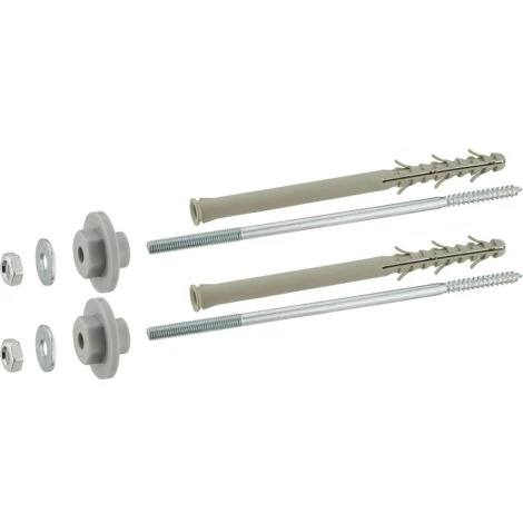 - fixations de lavabo sur mur isolé avec polystyrène vis acier 8×220 mm chevilles 10×160 mm écrous, rondelles plates et rondelles réglables
