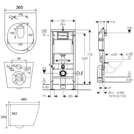 - Pour montage d’une cuvette de WC suspendue avec entraxe de fixation de 18 cm ou 23 cm