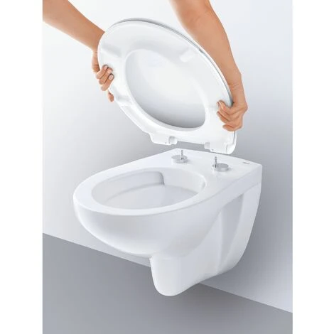 - Compatible avec siège abattant WC 39492000 (sans frein de chute) ou siège abattant 39493000 (frein de chute)
