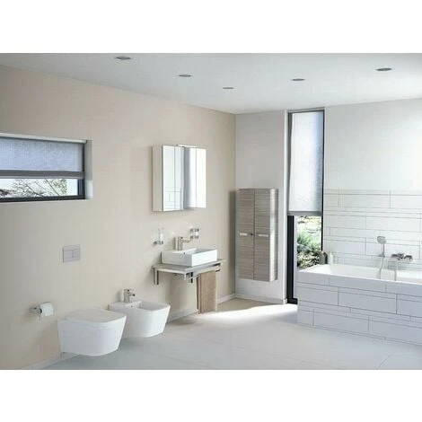 Strada, lavabo à poser autoportant, Blanc. A poser ou à fixer au mur. En grès fin. Fixation murale par 4 tire-fonds non fournis. Installation sur meuble avec ou sans plan ou sur console et plan.