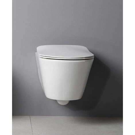 Laissez-vous séduire par la Cuvette suspendue sans bride avec abattant frein de chute, Blanc, Lucco Avva (Avvarimless).