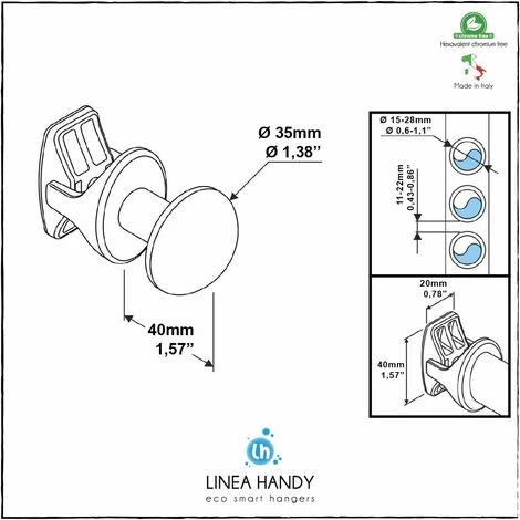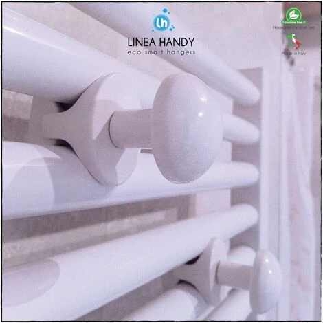 Porte-serviettes innovants, qui peuvent être facilement fixés directement sur le radiateur (aucun trou dans le carrelage ou la colle n’est nécessaire). Ils permettent d’avoir des serviettes toujours chaudes et sèches. Ils ne compromettent pas le fonctionnement du radiateur et peuvent être facilement déplacés d’un radiateur à l’autre. Excellent pour ceux qui veulent optimiser les espaces. Un article entièrement fabriqué en Italie, fabriqué en ABS avec des vis en acier inoxydable et des inserts en laiton.