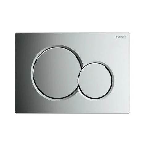- La plaque de déclenchement Geberit Sigma01 chromé en matière synthétique avec ses deux ellipses imbriquées offre un style jeune et pétillant à chaque salle de bain.