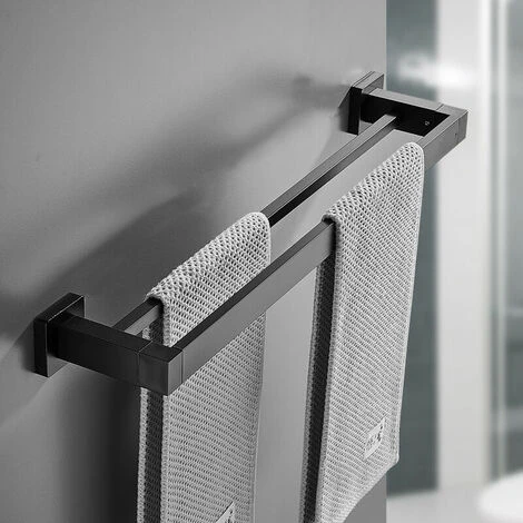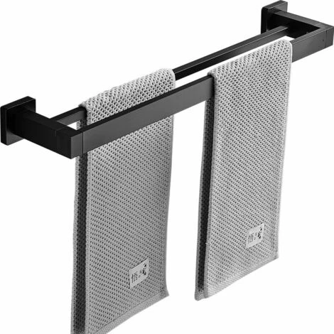 Porte Serviette Double Salle de Bain, Noir Barre Porte Serviette Mural, Porte Essuie Salle de Bain en Acier Inoxydable Porte Torchon Cuisine Support de Serviettes, 40cm
