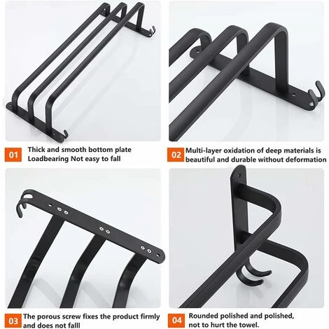 【Suffisant】 La barre de fixation épaisse rend le porte-serviettes plus ferme et peut contenir une serviette de bain suffisamment lourde. Il est parfait pour les familles modernes et les hôtels pour accrocher et organiser vos serviettes, serviettes de bain et vêtements.