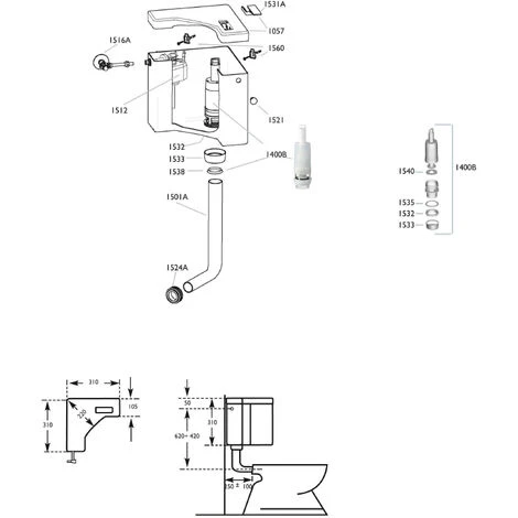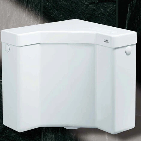 Réservoir adapté à une application murale d’angle, produit par CR, il est fourni complet avec tous les accessoires de montage, y compris le tuyau de rinçage.