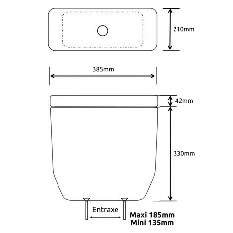 Ce réservoir s’adapte sur toutes les cuvettes standards dont l’entraxe de fixation comprise entre 135 et 185 mm.