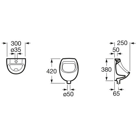Caractéristiques de l’urinoir suspendu en porcelaine avec alimentation supérieure Roca Mini (A353145000) :