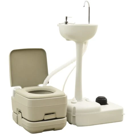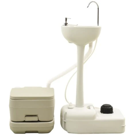 Cet ensemble portable, comprenant des toilettes et un support pour lave-mains, est conçu pour rendre votre camping plus pratique et agréable ! La toilette a un réservoir à déchets de 10 litres qui le rend adéquat pour l’utiliser 2-3 jours par un adulte. La toilette de caravane dispose d’un réservoir d’eau douce de 10 litres qui vous permet de rincer au moins 50 fois. Son rinçage en T à 3 voies facilite l’élimination des déchets. Les loquets latéraux facilitent le démontage et la fixation des deux réservoirs. La vanne coulissante aide à protéger contre les fuites et les odeurs. Le lave-mains de camping est équipé d’un distributeur de savon de 3 litres, d’un porte-serviettes et d’un réservoir d’eau douce de 17 litres. Il dispose d’un système de fonctionnement mains libres en marchant sur la pompe à pied pour fournir un jet d’eau. Le lavabo sur pied a deux roues intégrées pour faciliter le transport.