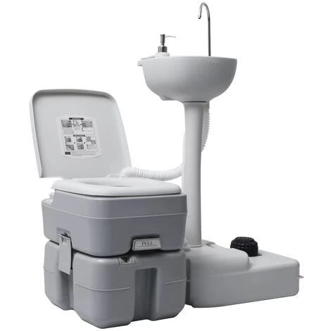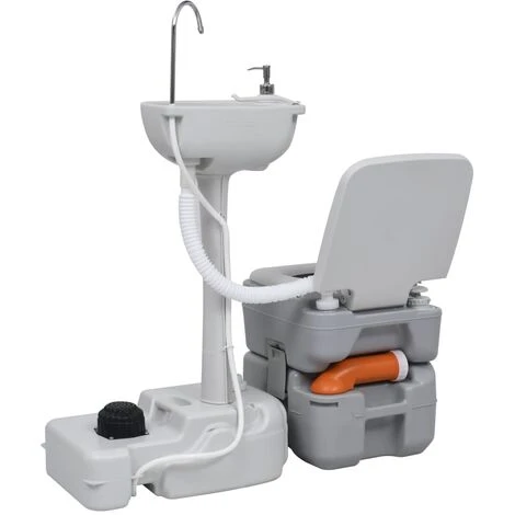 Cet ensemble portable, comprenant des toilettes et un support pour lave-mains, est conçu pour rendre votre camping plus pratique et agréable ! La toilette a un réservoir de rétention des déchets de 20 litres qui la rend adéquate pour une utilisation de 4 à 5 jours pour un adulte. Elle est équipée d’une pompe à piston améliorée qui rince le bol beaucoup plus propre que la pompe à soufflet. Son rinçage à 3 voies de type T facilite l’élimination des déchets. Le bec verseur rotatif vous permet de la vider rapidement sans éclabousser. La toilette de camping a un réservoir d’eau douce de 10 litres vous permettant de rincer au moins 50 fois. Les loquets latéraux facilitent le détachement ou la fixation des deux réservoirs ensemble. La vanne coulissante aide à protéger contre les fuites et les odeurs. De plus, la toilette portable est également conçue avec un indicateur de niveau pour montrer la quantité de déchets internes. La station de lavage des mains de camping est équipée d’un distributeur de savon de 3 litres, d’un porte-serviettes et d’un réservoir d’eau douce de 17 litres. Elle présente une conception de fonctionnement mains libres en appuyant sur la pompe à pied pour fournir un jet d’eau. L’évier sur pied a deux roues intégrées pour un transport facile.