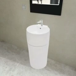 Ce vasque, en céramique premium, sera une touche d’élégance pour toute salle de bains, buanderies et toilettes. Sa finition d’une haute brillance apporte un design moderne et élégant. Ce vasque artistique en céramique est plus qu’un simple récipient pratique pour une utilisation quotidienne, mais c’est également un ornement pour votre intérieur. Il conviendra à tout style d’intérieur. Ajoutez à cela que l’évier est assez facile à nettoyer. Le trou à robinet est 3,5 cm pour une insallation de robinet. Le trou de l’égouttoir est de 4,5 cm de diamètre. Veuillez noter que le robinet n’est pas inclus dans la livraison. Si vous voulez monter ce lavabo au mur, il doit être soutenu par une paire de supports. Veuillez noter que ces supports ne sont pas inclus dans la livraison.