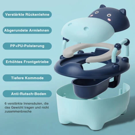 (2) Les toilettes pour enfants sont équipées d’un pare-éclaboussures qui empêche efficacement les éclaboussures d’eau. Il y a des poignées des deux côtés du pot, ce qui facilite la prise en main de bébé et assure un équilibre stable.