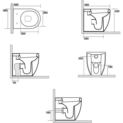 WC en céramique de 48 cm à chasse d’eau installation murale avec siège