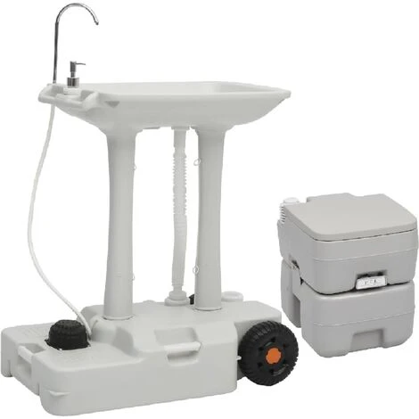 Cet ensemble de toilettes et de lave-mains de camping portable est parfait pour le camping, les voyages en camping-car, les chantiers de construction, les événements gastronomiques, les kiosques escamotables, etc, grâce à sa conception légère et compacte. Toilettes pratiques : les toilettes disposent d’un réservoir à déchets de 20 litres qui permet une utilisation suffisante pendant 4 à 5 jours pour un adulte. La toilette mobile est conçue avec une chasse d’eau de type T et à 3 voies pour faciliter l’élimination des déchets.Support de lavage de mains multifonctionnel : le lave-mains est équipé d’un distributeur de savon, d’un porte-serviettes et d’un réservoir d’eau douce pour répondre à vos différents besoins. Il permet une utilisation mains libres en appuyant sur la pompe à pied pour obtenir un jet d’eau.Matériau durable : l’ensemble de camping est fabriqué en polyéthylène haute densité solide, ce qui le rend résistant aux chocs et aux impacts pour plus de durabilité. Remarque : Chaque produit est livré avec un manuel de montage dans la boîte pour un montage facile.